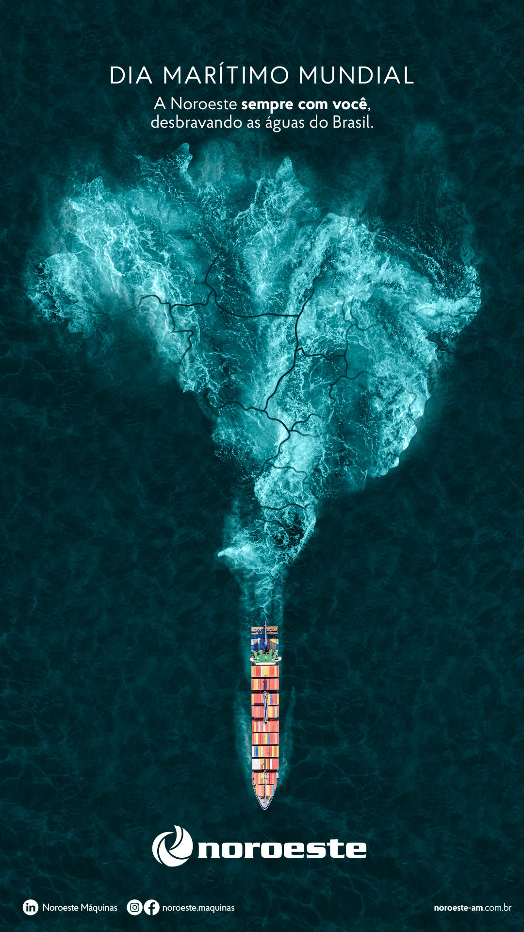 Conceito visual para anúncio publicitário do Dia Marítimo Mundial para a Noroeste Máquinas e Equipamentos, atuante em Rondônia e no Amazonas.
